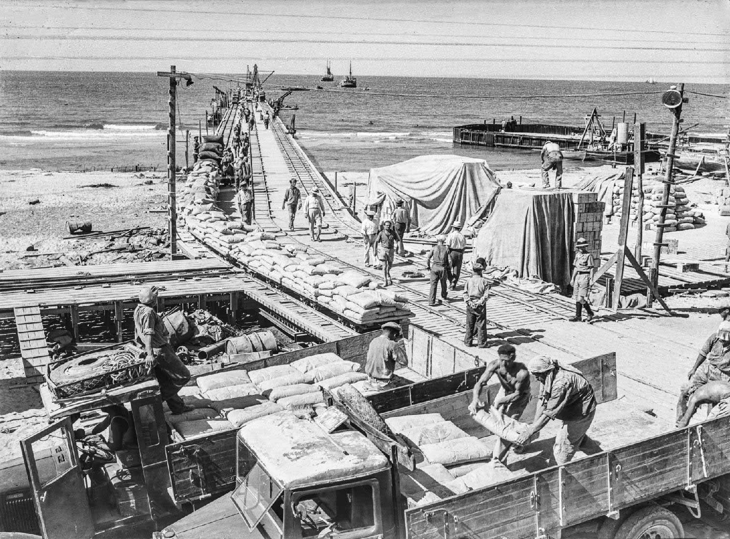 began his life’s work. Taking his first steps in Tel Aviv, a new city in a foreign land, Rudi set out to capture photographs at any moment. This photo is a rarity as it’s one of the earliest frames in our archive. The Tel Aviv Port seems quiet and small on this sunny morning. The workers are standing still or moving in perfect harmony. Pay attention to the figure standing in the left corner, against the roof of a truck, this anonymous port worker is looking to the horizon, resting for a moment.