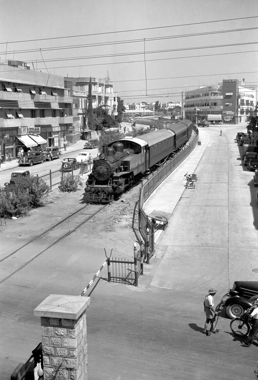 A Train from Jerusalem to Tel-Aviv Crossing Allenby St.