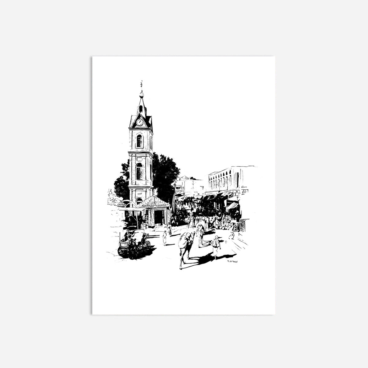 בהשראת הצילום המפורסם של מגדל השעון ביפו שצילם אריק מאטסון בין השנים 1898-1946.